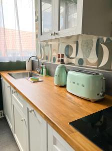 В апартаментах оборудована полностью функциональная кухня с плитой, духовкой, холодильником и посудомоечной машиной. Мини-кухня дополнена кофеваркой и чайником для удобства гостей. Для комфортного отдыха предусмотрены три кровати с неперевиваемыми подушками и отоплением. В ванной комнате есть фен и мыло, также предоставляются полотенца и постельное бельё. Среди прочих удобств - стиральная машина, рабочий стол и детские кроватки вместе с высоким стулом для ребёнка.
