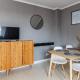 Gli spazi interni vantano un angolo cottura completamente attrezzato dove preparare i pasti in autonomia. Il soggiorno è arredato con divano tradizionale oltre a divano letto, mentre il riscaldamento assicura comfort nelle stagioni più fredde. Tra gli altri comfort figurano la lavatrice disponibile direttamente nell’appartamento e lettini/culle per bambini su richiesta. Per l’intrattenimento è presente una TV a schermo piatto collegata al WiFi gratuito che copre tutta la struttura.