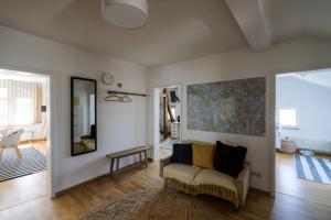Inside the apartment, guests will find a fully equipped kitchen featuring a stovetop, oven, dishwasher, refrigerator, toaster, coffee machine, electric kettle, tea and coffee making facilities as well as full kitchenware and a dining table for meals. The living area includes seating with sofas and a sofa bed alongside hardwood/parquet flooring complemented by carpeted sections. There are six beds across three bedrooms outfitted with feather and synthetic pillows plus bed linen to ensure restful nights.